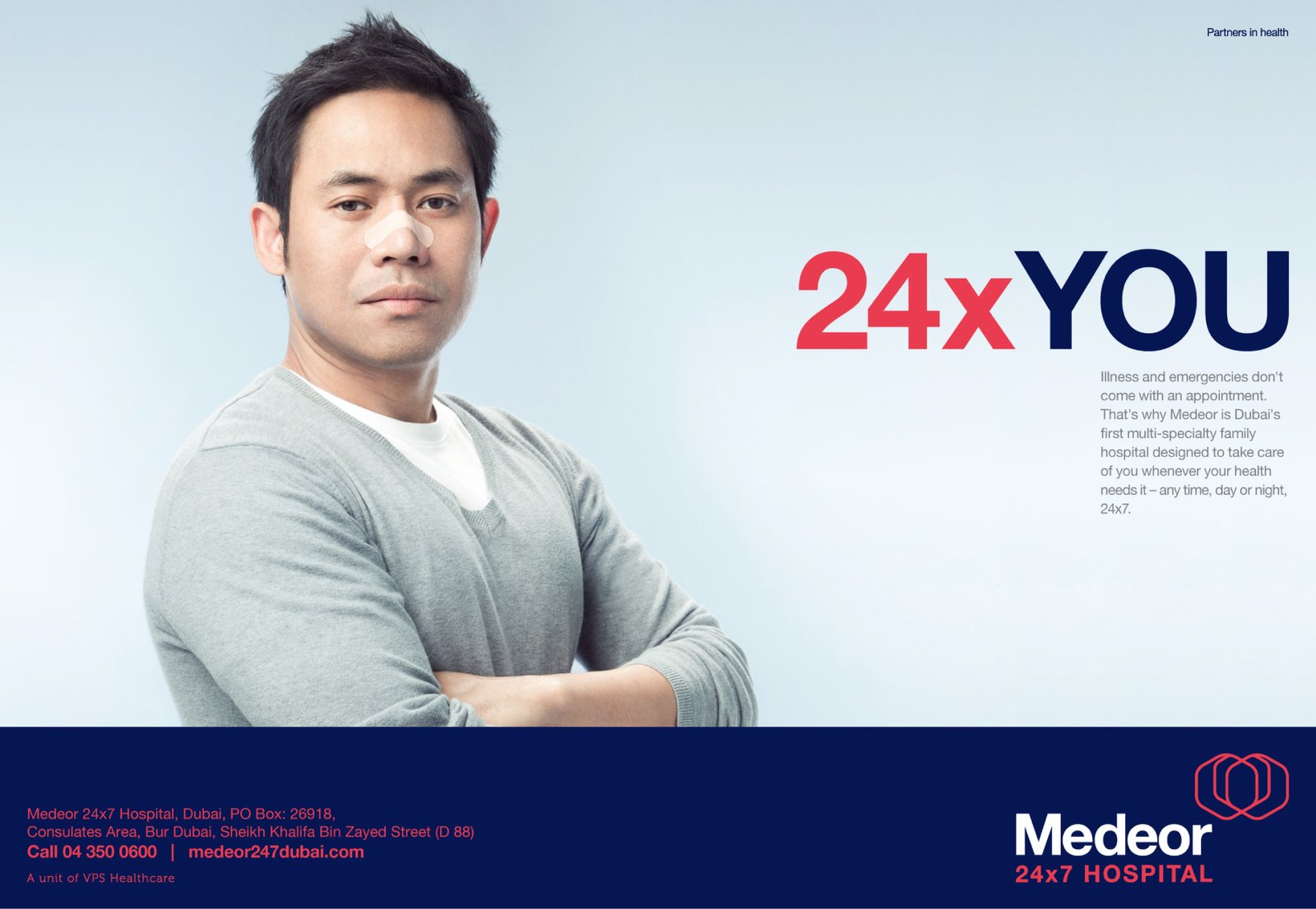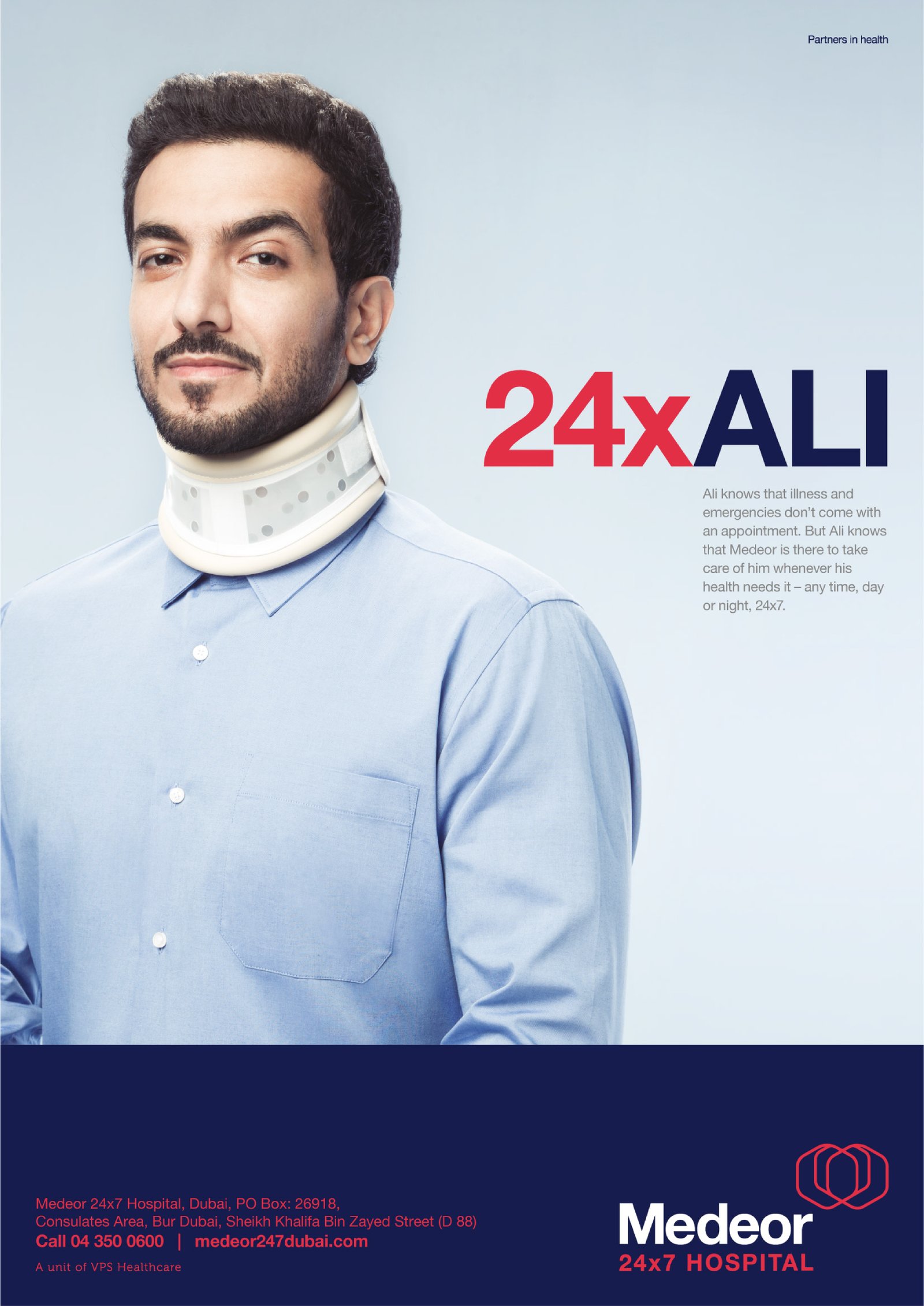 A new hospital came up with an innovative concept of extended working hours for non emergency related services. Product benefit became the campaign thought and was executed with relevant audience. Since it was a community hospital, we have targeted specific nationalities and chosen media which is concentrated in the hospital vicinity. The 24X7 concept was created with a commissioned model shoot of mix nationalities.