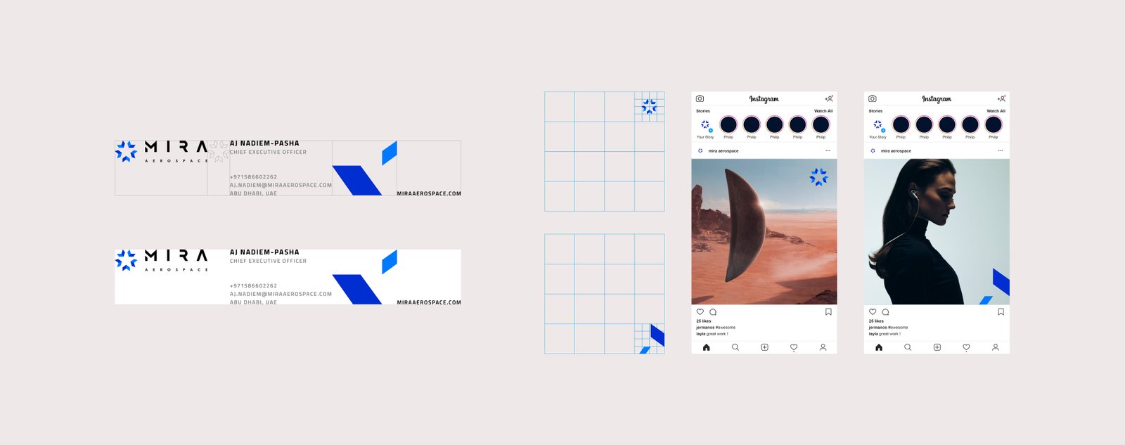 The name ‘Mira’ is inspired by a constellation, symbolizing a watchful eye from the stratosphere, gathering data for security and navigation. Its identity is rooted in advanced tech and science, with imagery and tone reflecting a futuristic, analytics-driven brand.